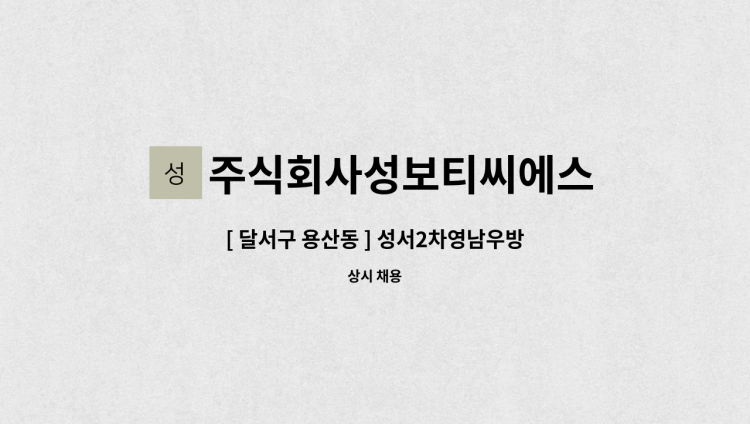 * 직무내용 : 통상적인 아파트 경비 업무 * 근무장소 : 수성구 사월동 시지3차서한이다음 * 근무시간 : (24시간격일) 07:00~익일07:00/(휴게 : 주간 4시간,야간 4시간 ) * 임 금 : 월급 2,710,000원 * 경비신임교육이수증 필수