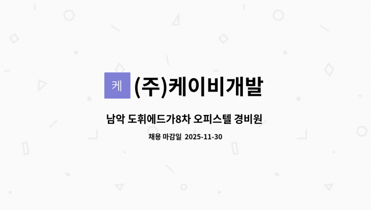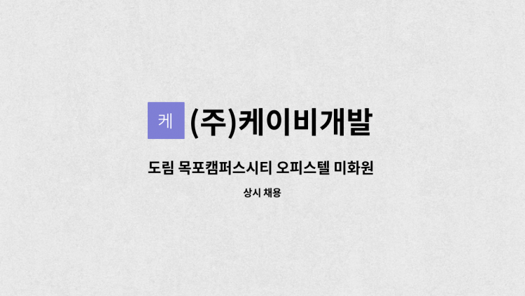 양산 명지 써밋 아파트 내부미화원 구인합니다. 1. 모집직종 : 내부미화원 2. 모집인원 : 1명 3. 근무시간 : 09:00 ~ 16:00 (휴게1시간 포함) / 토,일 공휴일 휴무 4. 근무투입일 : 채용확정 후 결정 *장애인 복지카드 소유자 우대 이력서 및 서류지원은 고용24 또는 아래 안내된 팩스로 접수부탁드립니다. 팩스 : 062-****-**** (*개인정보가 자동 블라인드 됩니다.) 전화 : 062-****-**** (*개인정보가 자동 블라인드 됩니다.)