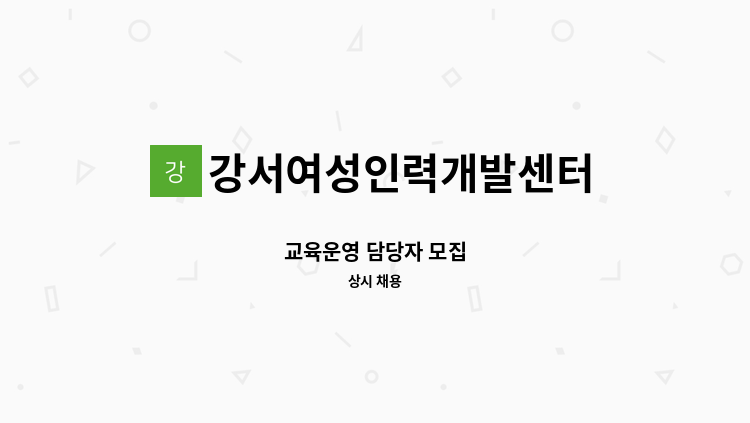 - 정부지원 직업교육기획/운영 및 행정 - 교육상담, 사후관리 등 - 기타교육 및 행사운영 **교육운영관련 경력자 우대 **사회복지사 및 평생교육사, 직업상담사 자격증 소지자 우대