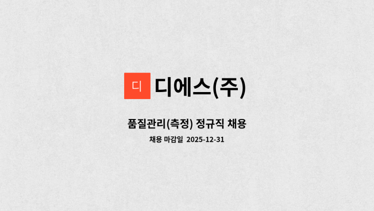 【구인·구직만남의 날 행사】 디에스(주) 품질관리팀 측정 담당자 채용 ▶행사장소 및 일정 : 24/11/05(화)14:00~17:00 서산시민체육관 ▶현장면접 *출하검사 1명 - 고객사별 출하검사 - 출하성적서 작성 - QMS 불량 관리 *공정검사 1명 - 외관 검사(3차원 측정기, 형상측정기 등) - 부적합 관리 - 리워크 관리