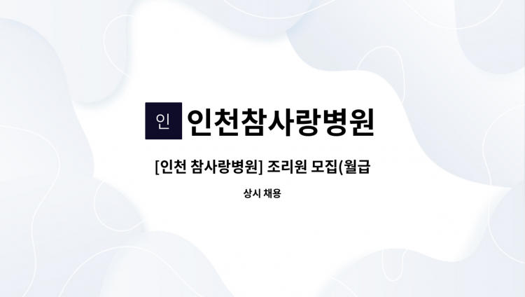 ◇◆◇ 인천 참사랑병원 영양팀 조리종사원(조리보조 조리원 1명) 구인모집 합니다 ◆◇◆