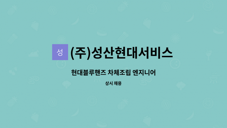 주요업무 : 자동차 정비 수리 열정과 성실한 분 모십니다 정비팀장님과 전화통화후 면접방문하시면됩니다