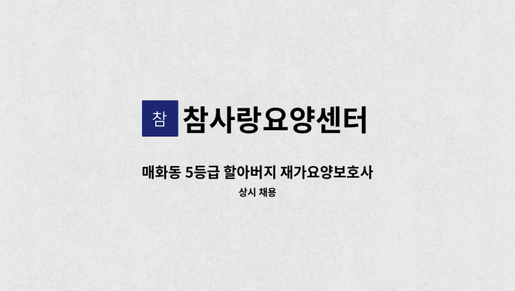 참사랑요양센터 - 4등급 할머니 케어 구인 : 채용 메인 사진 (더팀스 제공)