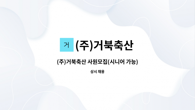 (주)거북축산에서 근무할 직원을 모집합니다 1.정육 라벨부착및 상품정리(외포장) 1명 (월 270만원 이상 - 협의가능) 2.정육 세절및 단순포장 1명 (월 230만원 이상 - 협의가능)