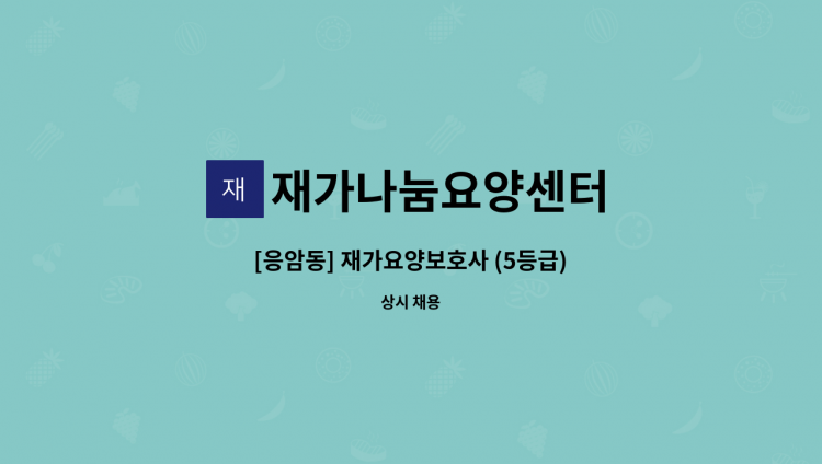 -직종:요양보호사 -직무대상: 4등급 여 자어르신 -직무내용: 재가방문요양 -근무시간: 09:00~12:00/주5일 -시급: 12,650원 -근무지: 서울시 은평구 응암로22길
