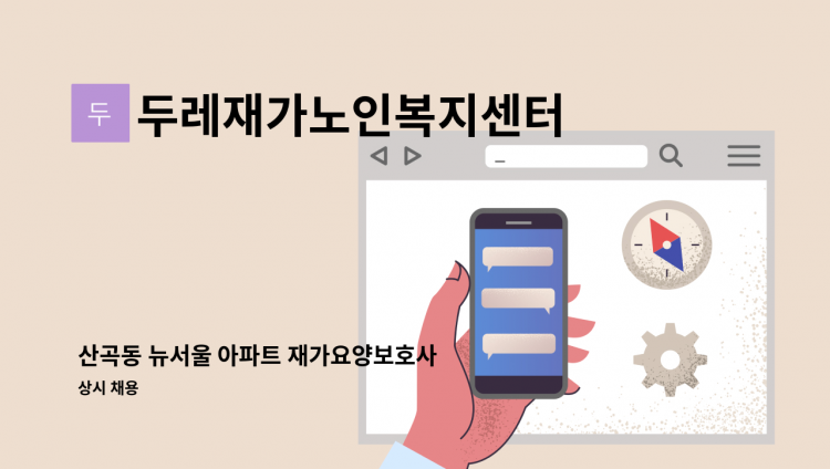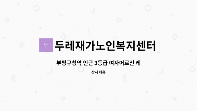 * 산곡동 프리상뜨아파트에서 근무 가능하신 분을 구인합니다. * 월-금(주 5일 근무) * 오후1시~4시 * 4등급 70대 여자어르신 * 가사활동, 목욕도움, 병원동행, 말벗등 * 시급 12,700원