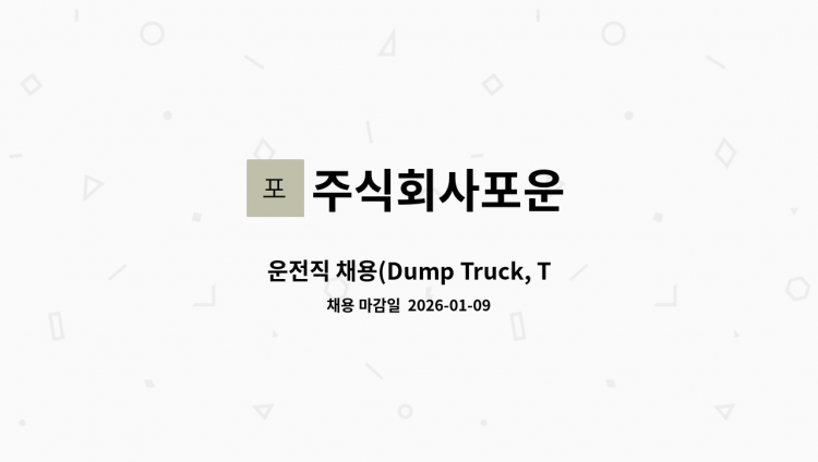 주식회사포운 - 정비직 채용(화물/중장비 정비원) : 채용 메인 사진 (더팀스 제공)
