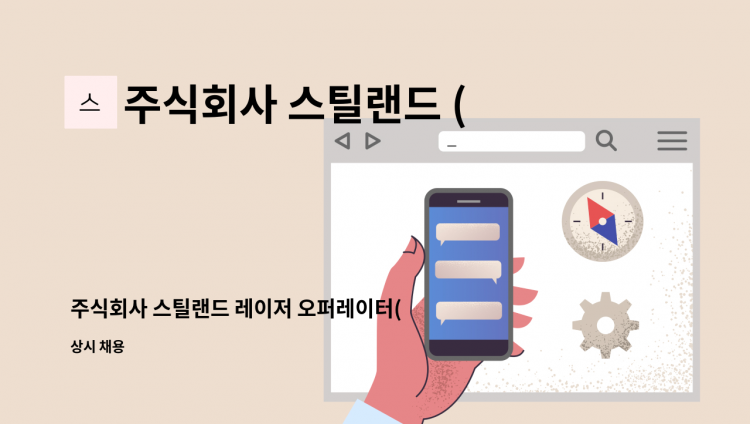 주식회사 스틸랜드에서 레이저 절단 및 절곡 오퍼레이터 모집합니다. 지원자격 ㆍ경력 : 신입/경력 1년 이상(사원, 과장급, 면접 후 결정) 우대사항 ㆍ인근거주자, 운전가능자 업무내용 ㆍ레이저 오퍼레이터, 레이저 절단 및 절곡가공, 공장 안전관리 등 급여 ㆍ경력여부에 따라 면접 후 협의(3,600만원 이상) 근무시간 ㆍ월~금, 08시 ~17시(생산 일정에 따라 초과근무 및 특근 가능) [레이저가공 > 레이저가공 작업준비] 레이저 원리 파악하기,레이저 종류 파악하기,레이저 구조 파악하기 [레이저가공 > 레이저가공 작업안전관리] 안전수칙 파악하기,안전장치 점검하기,작업장 정리 상태 점검하기,안전보호구 점검하기 [레이저가공 > 레이저가공 준비] 장비 확인하기,소재 파악하기,작업조건 확인하기 [레이저가공 > 레이저 절단] 재료 준비하기,절단하기,절단면 확인하기