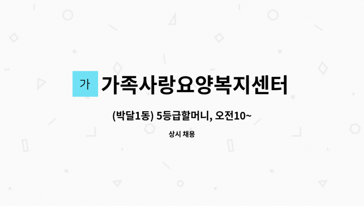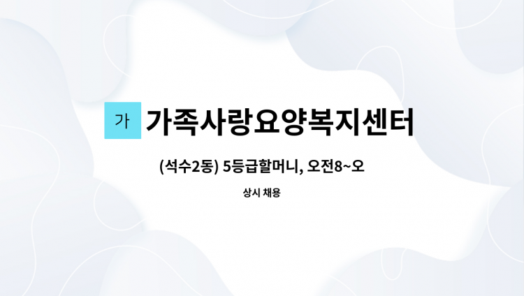 가족사랑요양복지센터 - (반월천동학중학교근처) 4등급 독거할아버지, 오전9~정오12, 주5 : 채용 메인 사진 (더팀스 제공)
