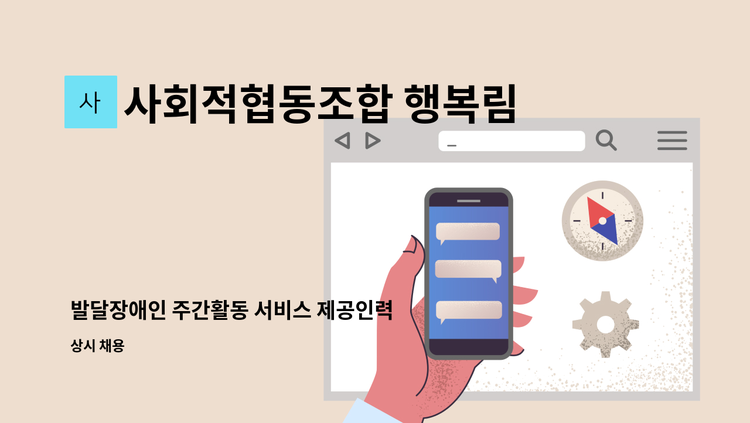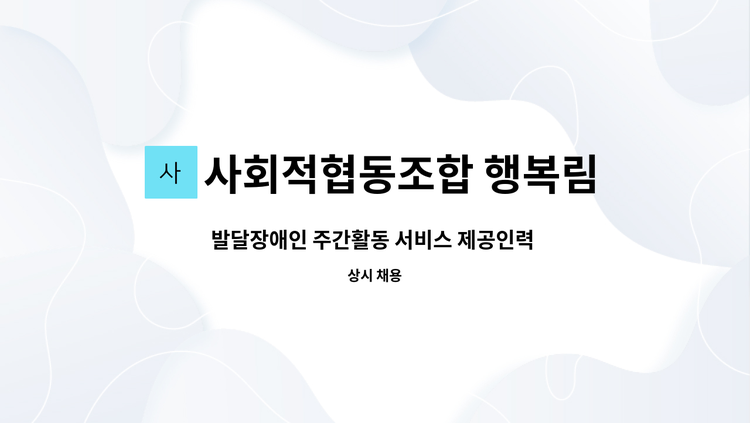 사회적협동조합 행복림 - 발달장애인 주간활동 서비스 제공인력 모집 (사회적협동조합 행복림 이곡 본점) : 채용 메인 사진 (더팀스 제공)