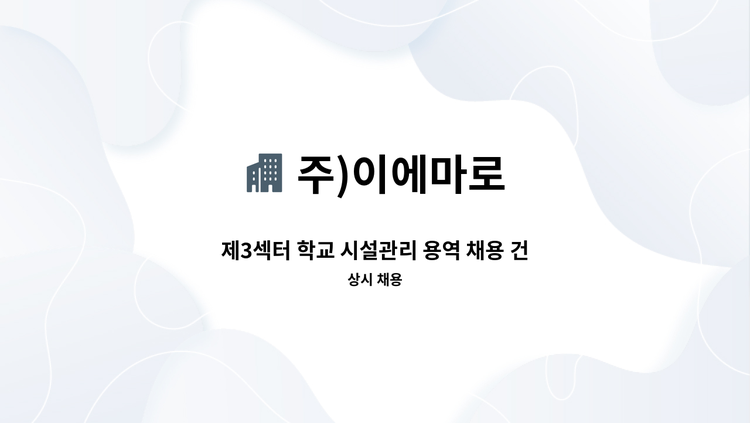 (둔촌동)둔촌중학교 시설물 수리, 운동장 환경정비, 분리수거, 간단한 조경업무 - 월 2,246,270원 (식대포함) / 명절휴가비 850,000원 연 2회 지급 / 피복비 15만원 지원 - 07:30~16:30(주5일) / 휴게시간 1시간 - 지원방법: 이력서 문자(010-****-**** (*개인정보가 자동 블라인드 됩니다.)) 전송 또는 팩스(02-****-**** (*개인정보가 자동 블라인드 됩니다.)) 또는 이메일( [email protected] ) 지원 *** 본사(이에마로 사무실) 면접 가능하신 분만 지원해 주세요.