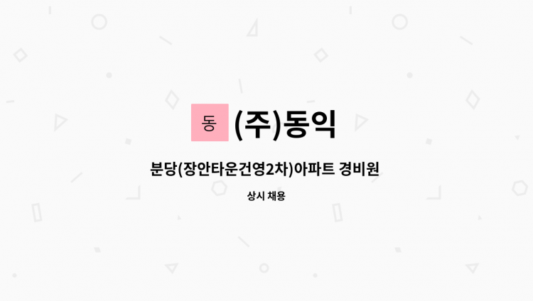 중계경남롯데상아 경비원모집 - 2025년 4월 1일 근무개시 1. 06시 맞교대 2. 휴게(주간3시간, 야간 7시간) 3. 월급여 2,179,000원 4. 복지카드소지자우대 - 전화문의가능(010-****-**** (*개인정보가 자동 블라인드 됩니다.))