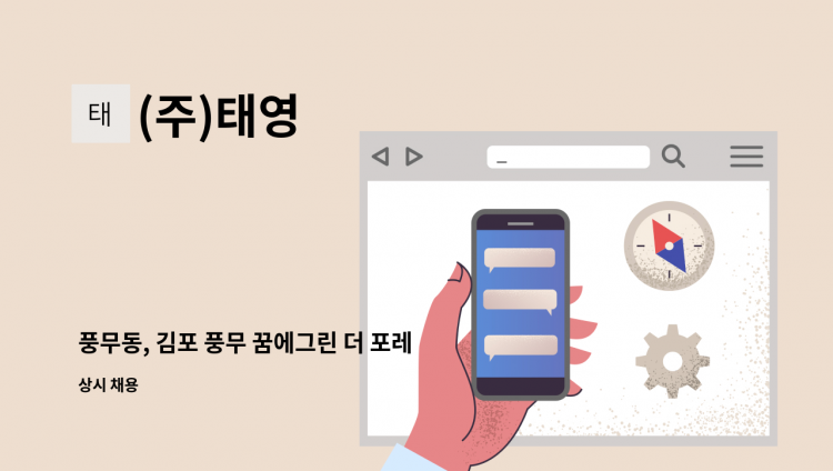 풍무동, 김포 풍무 꿈에그린 더 포레듀 4단지 외곽 청소 업무 - 근무시간 : 주 6일 (월~금) (오전) 9시 00분 ~ (오후) 4시 00분/(토) (오전) 9시 00분 ~ (정오) 12시 00분 - 휴게시간 : 1시간 제공 - 임금형태 : 월급1,730,090원