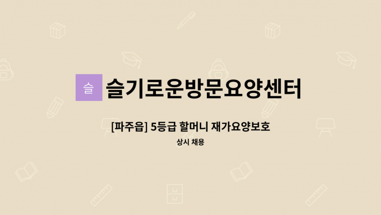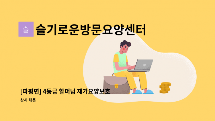[법원읍] 4등급 할머니 재가요양보호사 모집 / 일상생활 및 신체활동 지원, 말벗 / 주6일 09:30~13:30(일4시간 근무) - (시간조율가능) / 시급 : 12,800원 (시급 10,030+주휴수당 등) / 교통비 지급 (5만원) / 채용담당자와 전화 후 면접 진행 **실제 서비스 제공기간에 따라 임금을 계산하여 지급하는 형태로 채용시 근로자마다 주 소정근로시간이나 임금, 근무(예정)지 등에 차이가 있을수 있음**