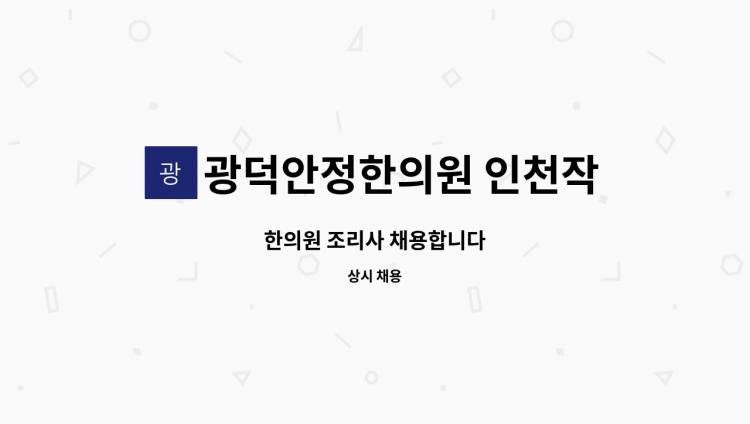 광덕안정한의원 인천작전점 - 한의원 조리사 채용합니다 : 채용 메인 사진 (더팀스 제공)