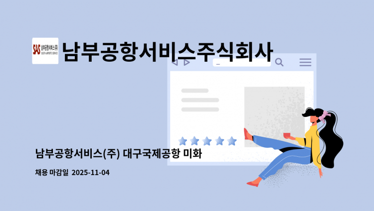 ㅇ 근무지: 남부공항서비스(주) 본사(부산광역시 강서구 공항진입로 108, 국제화물청사 218호)