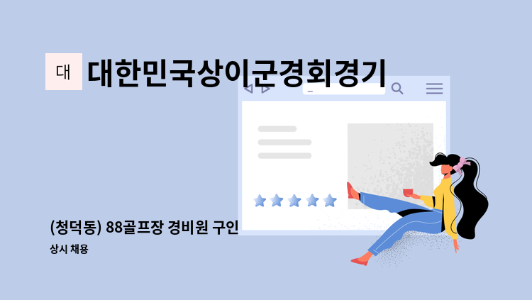 * 88 골프장 청소 * 근무시간 : 주6일 08:30~17:30 * 주말 근무 가능자/ 연차 휴가비/ 국.공휴일 수당 별도 * 월급 : 272만원 ※실제 서비스 제공기간에 따라 임금을 계산하여 지급하는 형태로 채용시 근로자마다 주 소정근로시간이나 임금.근무(예정)지 등에 차이가 있을 수 있음