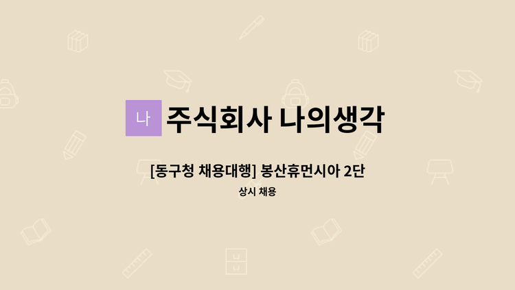 - 아파트 미화 ,청소, 그외 관련된 업무 - 근무시간 : 주 6일 근무 월~금: 09:00 ~ 16:00 휴게시간 (11:30 ~ 13:00) / 토:09~12:00 - 급 여 : 월 1,641,300원 - 2026년 1월부터 근무시작 예정