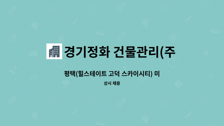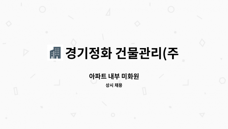 - 아파트 내부 미화원, 미화반장 업무 ※미화반장의 경우 경력자만 지원가능(1년 이상)※ - 주 5일근무(09:00~16:00(휴게 1시간)) - 월 1,614,360원 / 1,664,360원