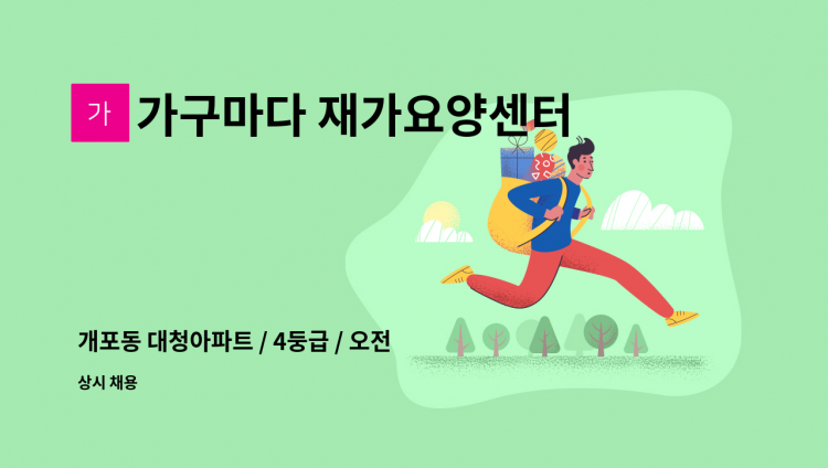 * 4등급 * 인지 자극 지원, 일상 생활 지원(청소,세탁,반찬) * 일상생활 거동 가능하심 * 근무시간 09:00~12:00 / (주 6일) 시급13000