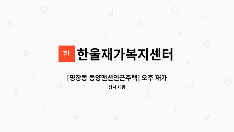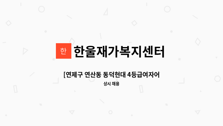 -4등급 남자어르신 , 배우자와 함께 거주(건강하심) -근무시간: 주5회 월~금 (오전 08:00~11:00) -업무내용: 신체활동지원,일상생활지원,가사등 -근무예정지: 거제 유림아시아드 - 포괄시급 13000
