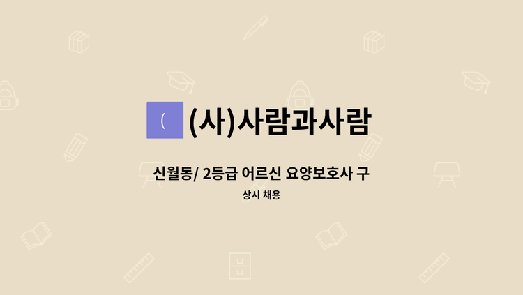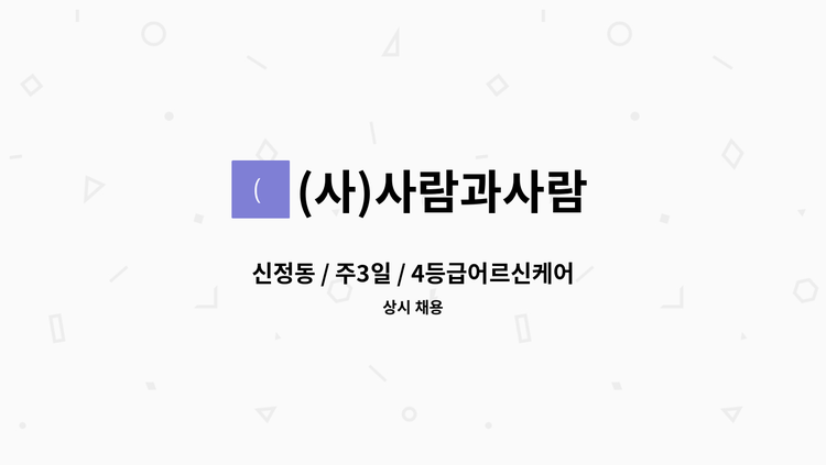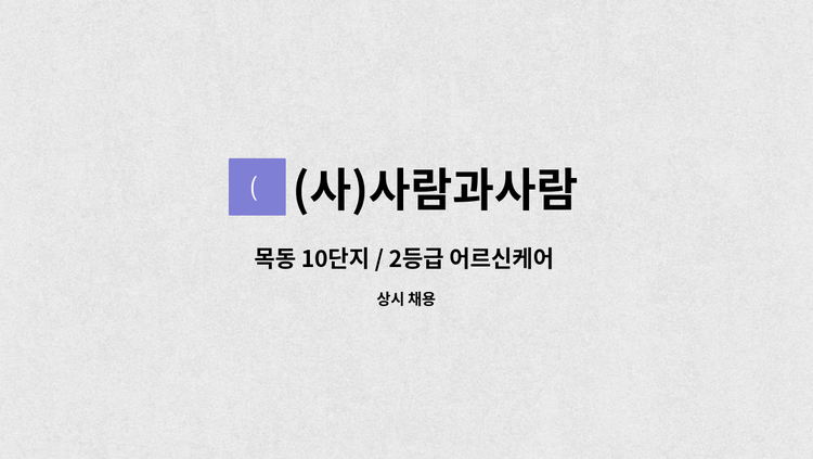 [신정동 / 1등급 어르신 요양보호사 구인] - 1등급 할머니 / 인지양호 / 거동불가 / 휠체어 사용 - 직무 : 식사 준비 / 청소 / 정서지원 / 목욕도움 등 - 근무시간 : 월~토 08:00~12:00 - 시급: 13,300원 ( 기본시급외 수당포함 13,000원 ) - 양천구 신목로 14길 거주