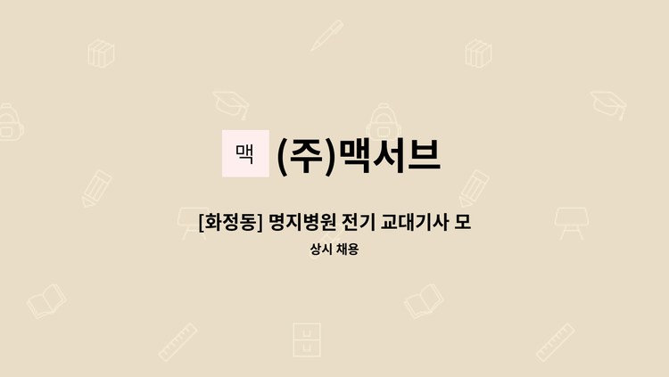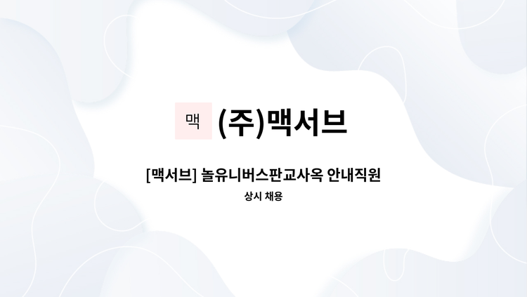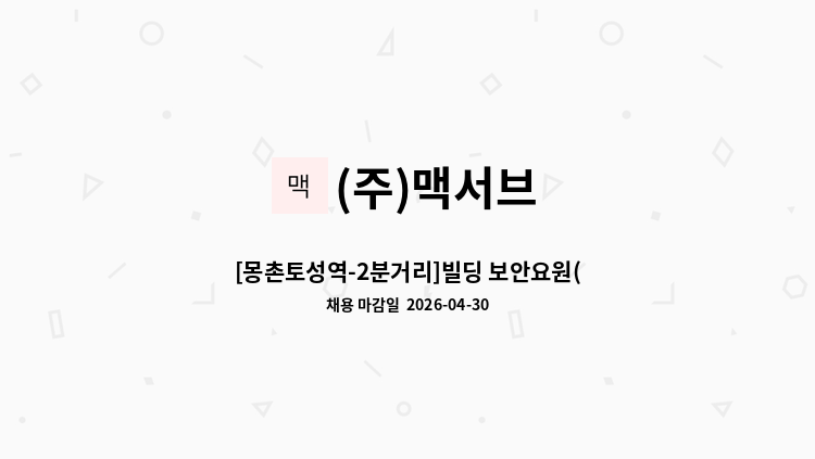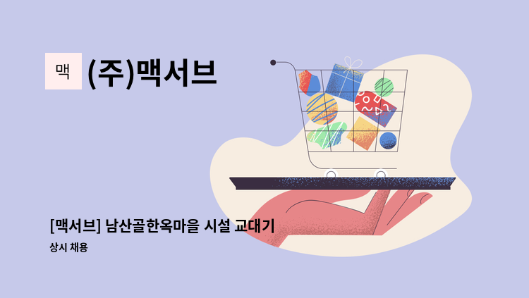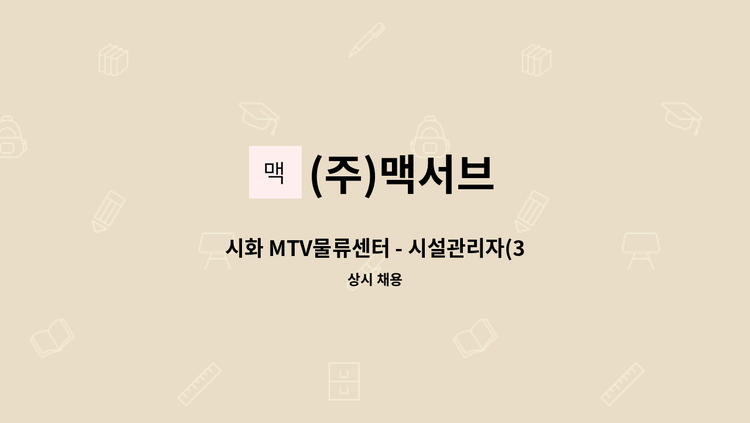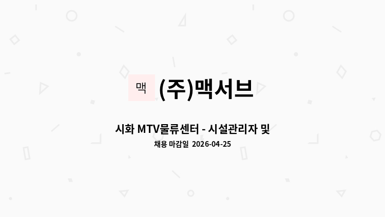 * 업무 1. 쇼핑몰 공용부 시설관리 및 순찰 2. 냉난방 시설, 급배기 시설관리 * 유니폼 제공, 4대보험 적용, 1식제공, 연차사용