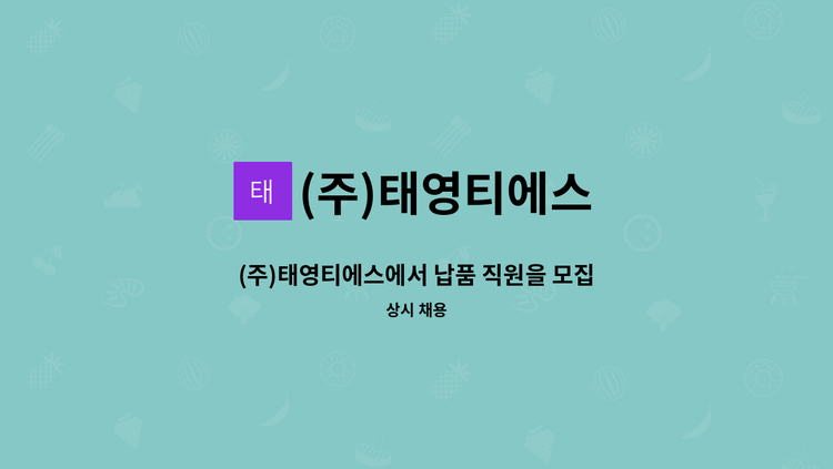 부산,경남 일대 건설현장 잡자재,안전용품 납품업체 (주)태영티에스 입니다. 대리급 직원 1명 건설현장 납품 및 직원을 구합니다 관련업종 유경험자 우대. 납품 품목: 건설현장 잡자재 및 안전용품 직무 내용: 상기 품목을 매입하고 건설현장에 납품하는 업무 근면 성실하게 근무 하실 구직자분을 구합니다. 필수조건 : 자동차 운전면허 1종 소지자 기타 궁금하신 사항은 본사나 담당자 연락처, 이메일로 문의 주시면 됩니다