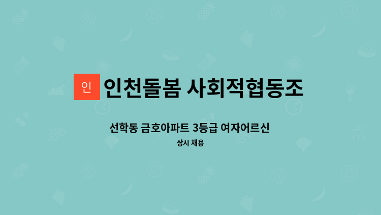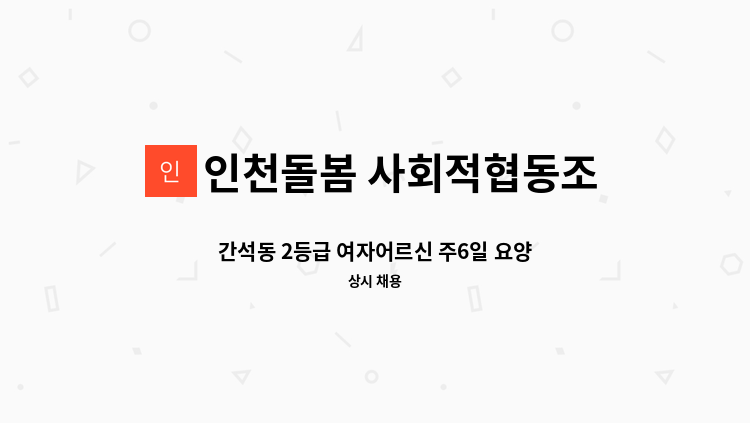 -12:00~15:00 월.수,금 주3회 방문요양 -시급: 13,200원(주휴 수당 등 포함) -식사도움, 병원동행, 개인위생, 가사지원 등 필요