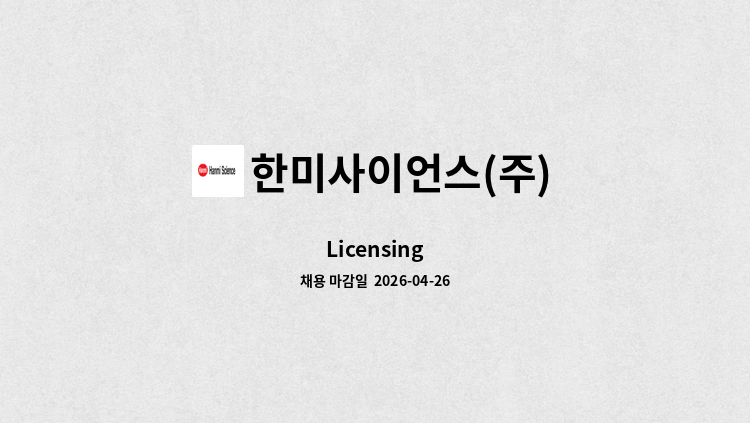 한미사이언스(주) - Licensing : 채용 메인 사진 (더팀스 제공)