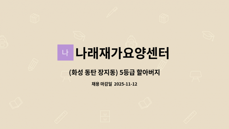 군포 주몽마을 대림아파트 29년생 2등급 여자어르신 케어해주실 요양사님 모십니다 휠체어 이동 / 기저귀 케어 등 필요 몸무게 40kg 초반 / 거실에 침대 놓고 거주 / 잘 주무심 / 인지 좋음 / 의사표현가능 아들 동거중 (일과시간엔 외근) 주 6일 근무 월 급여 : 320만원 궁금하신사항은 연락부탁드립니다 나래재가요양센터 1644-6234 010-****-**** (*개인정보가 자동 블라인드 됩니다.)