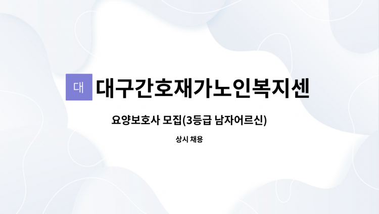 - 근무지 : 수성4가 아파트 - 근무내용 : 4등급 할머니 - 근무요일 : 월~금(주5일) - 근무시간 : 09~12시 (1일 3시간) - 시급 : 11,100원 - 주업무 : 가사지원/신체활동지원 * 많은 지원 바랍니다. 010-****-**** (*개인정보가 자동 블라인드 됩니다.)