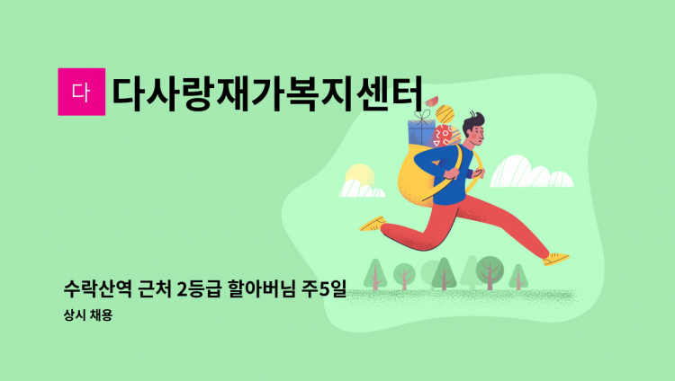- 4등급 여자어르신 - 화랑로 51길81(공릉아파트) - 거동가능, 식사, 청소, 심부름 등 - 주5일(월 24회, 격주토요일근무) -주 5일. 9:00~12:00 - 시급 11,020원