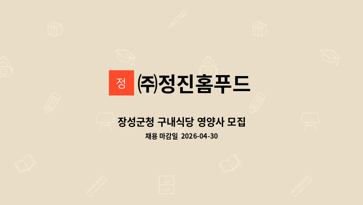 -광주 NC 구내식당 조리사(찬모) 구인 - 1명 담당업무 : 구내식당 찬모 경력사항 : 동종업종 종사자 우대 (경력우대) 근무시간: 09:00~15:00 / 주5일근무 / 휴게시간 1시간 근무지 : 광주 NC 백화점 구내식당(광주광역시 북구 경열로 249(신안동) 급 여 : 140만원 기타 채용에 관해 궁금한 사항은 전화 또는 이메일 문의 바랍니다.
