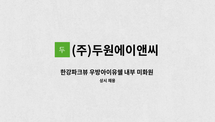 ▣ 아파트 단지 내부청소 ▣ 근무: 주6일 (평일)09:00 ~ 15:00 (토) 09:00~12:00 ▣ 급여: 125만원 ▣ 계약기간 종료 후 계속 근무 가능 ▣ 지원: 미화반장 010-****-**** (*개인정보가 자동 블라인드 됩니다.)