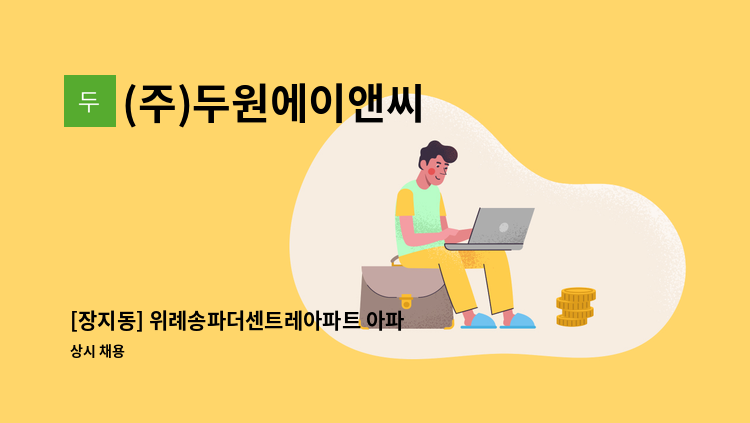 마두동 정발마을9단지 건영빌라 외곽청소업무 / 월 1,172,320원 / 주6일근무 월~금 09:00~15:00 (휴게시간 11:30~13:00) 토 09:00~12:00 / 채용담당자와 통화후 면접진행
