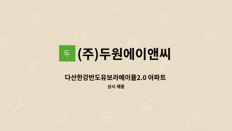 ▣ 아파트 단지 내부청소 ▣ 근무: 주6일 (평일)09:00 ~ 15:00 (토) 09:00~12:00 ▣ 급여: 125만원 ▣ 계약기간 종료 후 계속 근무 가능 ▣ 지원: 미화반장 010-****-**** (*개인정보가 자동 블라인드 됩니다.)