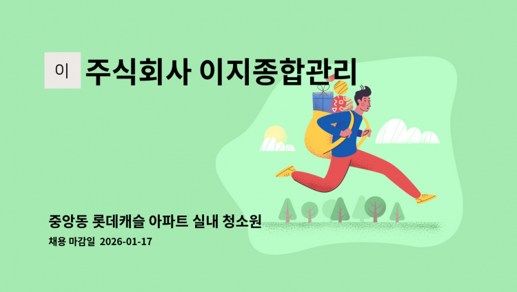 / 라온프라이빗1단지 아파트 미화업무 - 근무시간 : 평일 08:45~15:30, 토요일 격주:9~12시 - 월 1,364,250원