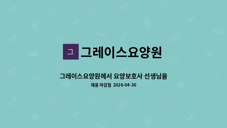 요양원 내 조리원 모집(조리사 자격증 무관) - 근무시간 : 3일 05:30 ~ 14:30 / 2일 05:30 ~ 17:30 - 근무 형태 : 주 5일 근무 (토,일 고정 휴무가 아니라 같은 조원과 휴무일 협의후 조정) - 4대보험 가입, 식사제공 - 급여 : 210만원 ~ 220만원 (협의 가능)