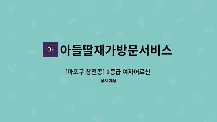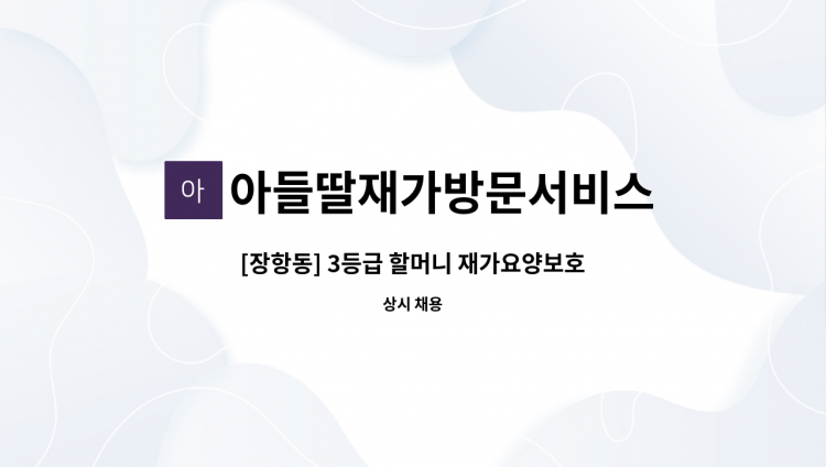 / 1등급 여자 어르신 돌봄서비스 (중풍 편마비 증세) : 체구 작으시고 의사소통 가능하며, 한쪽 움직임은 가능하심.어르신돌봄이나 업무적으로 어려운 사항은 없음 / 주6일 근무 (월~토 13:00~17:00) / 시급 11,200원 / 센터장 유선 통화(010-****-**** (*개인정보가 자동 블라인드 됩니다.)) 후 면접