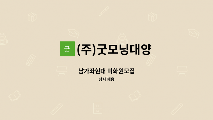 (주)굿모닝대양은 경비원, 미화원을 관리하는 용역회사 입니다. 1. 급여관리 2. 4대보험 관리 3. 용역,도급비 청구 4. 경비업 관련 전반적인 사무업무