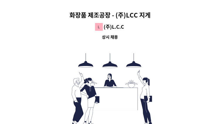 (주)엘시시는 1997년에 설립된 화장품, 립케어, 의약외품(가글, 손소독제) 생산 전문업체입니다. BDF(니베아), 유니레버(바세린, 도브, 폰즈), 테라브레스의 글로벌 고객사 뿐만 아니라 유한양행, 3M, 애경 등 국내 유수의 업체들과 파트너십으로 OEM ,ODM 제품을 생산, 공급하고 있습니다. 또한 ORIOX(오릭스) 브랜드를 통해 품질, 가격경쟁력을 앞세워 틈새시장의 강자로 거듭나고 있습니다. 2021년에는 립케어, 가글 복합공장인 제 5공장이 증축되었으며 사세확장을 진행하고 있습니다. 수출을 통한 백년기업을 추구하는 (주)엘시시(LCC)와 미래를 함께하실 분을 찾고 있으니 많은 관심과 지원바랍니다. 모집부문 1. 화장품 원료 계량(측량) - 담당업무 : 화장품 내용물 원료 계량(측량) - 우대사항 : 병역특례, 특성화고/마이스터고 2. 화장품 배합(제조) - 담당업무 : 화장품 내용물 배합(제조) - 우대사항 : 해당 직무 경험자 3. 충전/포장 생산기사 - 담당업무 : 설비세팅, 생산성 향상, 현장 2S(정리, 정돈) - 우대사항 : 기계, 공학계열, 해당 직무 경험자 4. 기타 - 공통 우대사항 : 지방근무 및 기숙사 생활 가능자 - 급여 : 3,500만원 이상(명절상여 연 100%, 휴가비 포함) 사세 확장이 진행되고 있는 만큼, 많은 관심과 지원바랍니다.