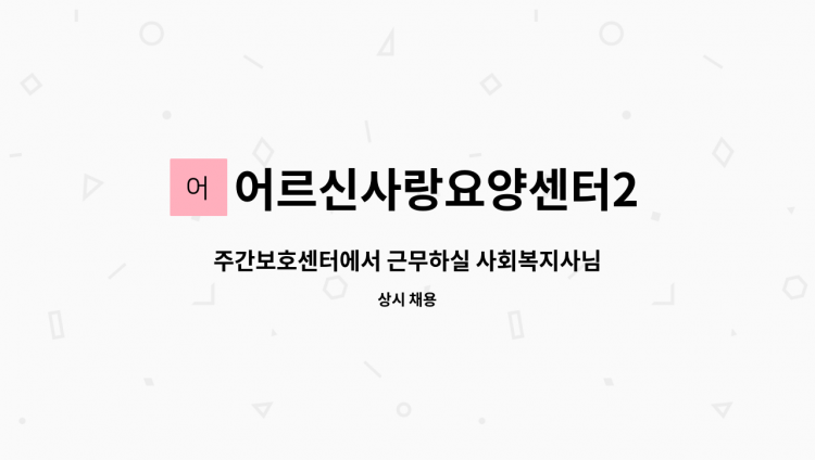 주간보호센터에서 어르신 요양서비스를 담당 어르신 요양급여,송영(송영수당 별도 지급), 목욕,프로그램지원등 요양보호사 업무 일반