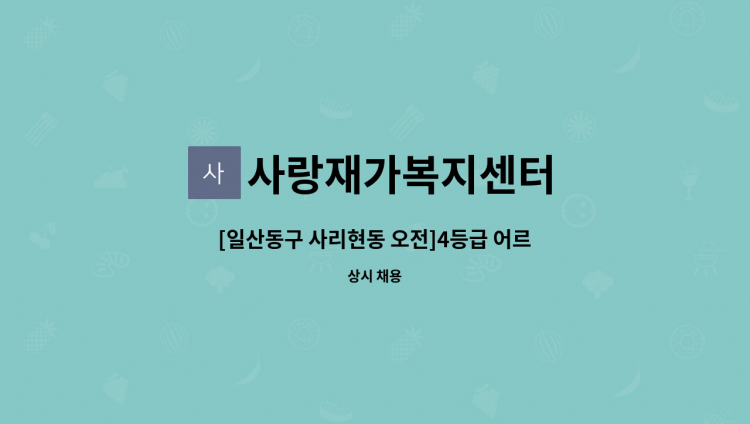 - 5등급 할머니 케어 (박달1동 박달시장 인근, 가사, 신체지원) - 주5일 근무 - 12:00~15:00 - 시급11,000원