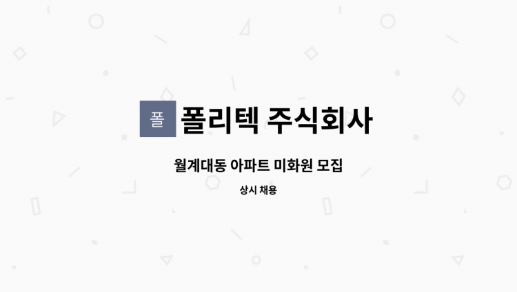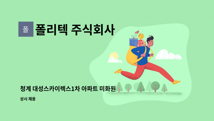 - 송내파인푸르지오 아파트 내부청소 - 근무시간:주6일(월~금)09:00~16:00(토요일)09:00~12:00 - 급여:1,477,730원