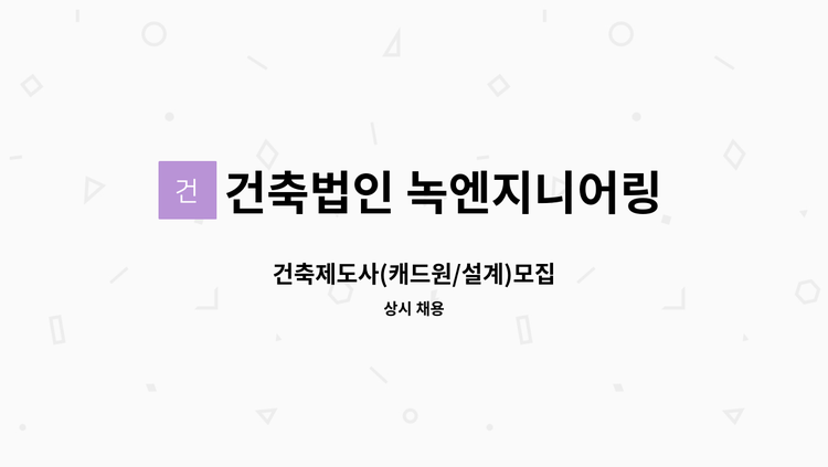 1. 현상설계경험자 우대 2. 기획설계, 계획설계, 실시설계 3. 근무지 -익산(익산시 인북로 234) 및 전주(전주시 덕진구 장동 1093-3) 사무실에서 근무