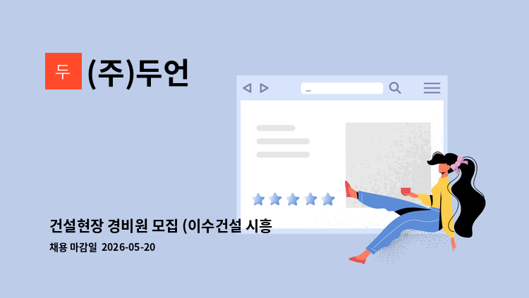 *건설현장 경비원 *근무시간 : 07시 ~ 익일 07시 *휴게시간 10시간 11:30~13:00, 17:30~19:00, 21:00~익일05:00 *장애인 복지카드 소지자 우대
