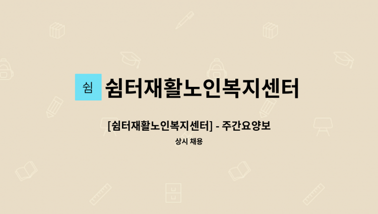 주간보호센터에서 어르신케어의 업무입니다. * 근무시간 :8시20분~6시 * 주 5일 *휴게시간 : 12시~1시30분 지원문의 전주여성새로일하기센터 이경은 232-2352