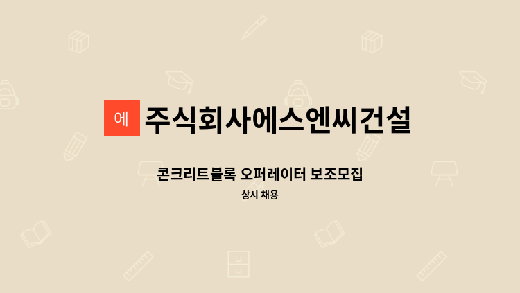 콘크리트 제품을 생산하는 생산 설비 조작원으로 메인 오퍼레이터의 지도하에 기계조작및 작동방법등 을 익히며 향후 생산 전반을 책입지는 메인 오퍼레이터 입니다. 처음 배운다는 생각으로 입하시면 지금 당장의 급여보다 향후 조건 좋습니다.