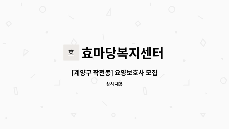 대상자 : 79세 여자어르신 근무시간 : 월~토, 08:30~12:30 근무지 : 인천광역시 계양구 계양문화로 141(용종동, 용종마을중앙아파트) 시급 : 11,000원